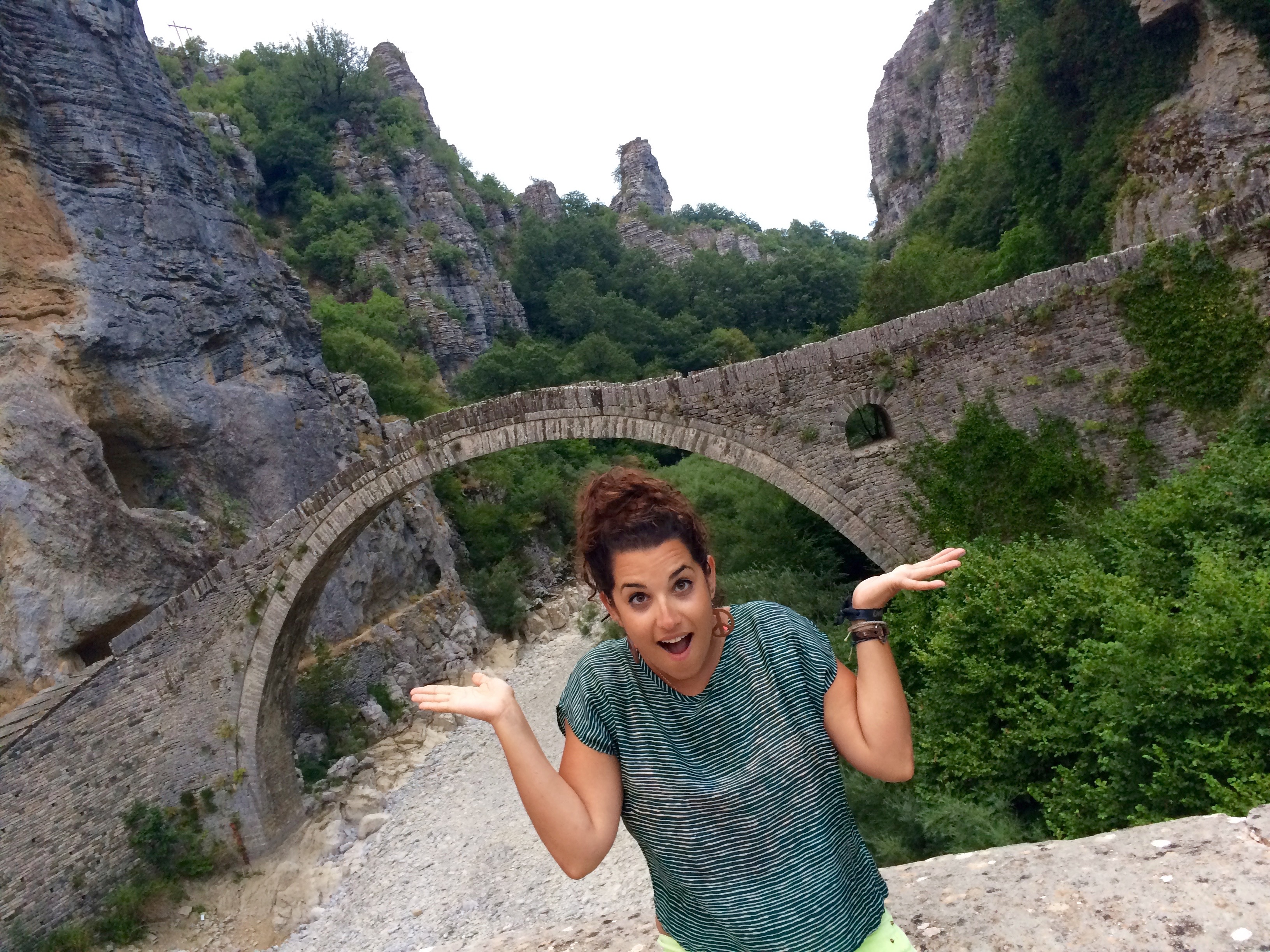 When we were driving through the Zagori of Epirus in the northwest part of Greece, Lambchops told me we were going to see a bridge just as famous as the Golden Gate Bridge. I don’t know what I was expecting, but the bridge of Kokkorou was unbelievable, dates back to 1750, is one of the most famous bridges in the country, and this photo looks like I’m at the center of the earth!