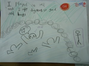 This is my 6th grader Zidane.  He was reading about his Chuseok vacation.  He is also the boy who likes to tell out “TEACHA! I LOVE YOU! TEACHA’S SISTA JACQUIE IS BEAUTIFUL!”  Heartbreaker this one.