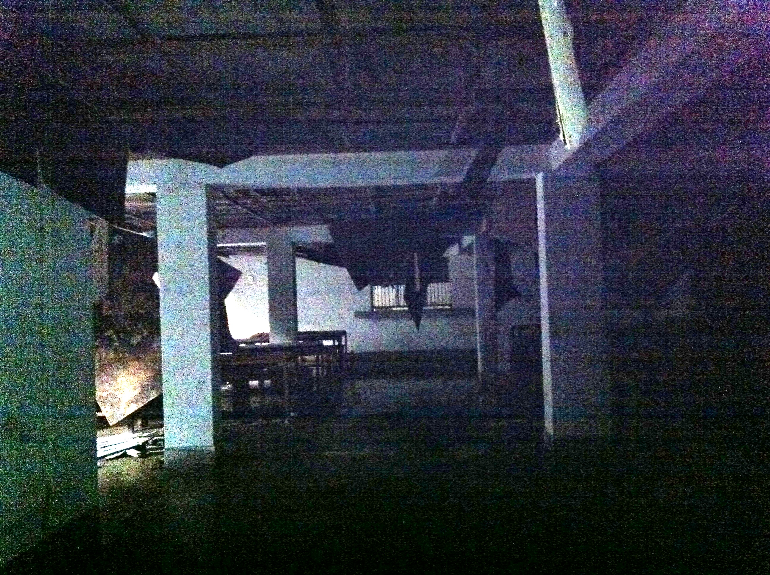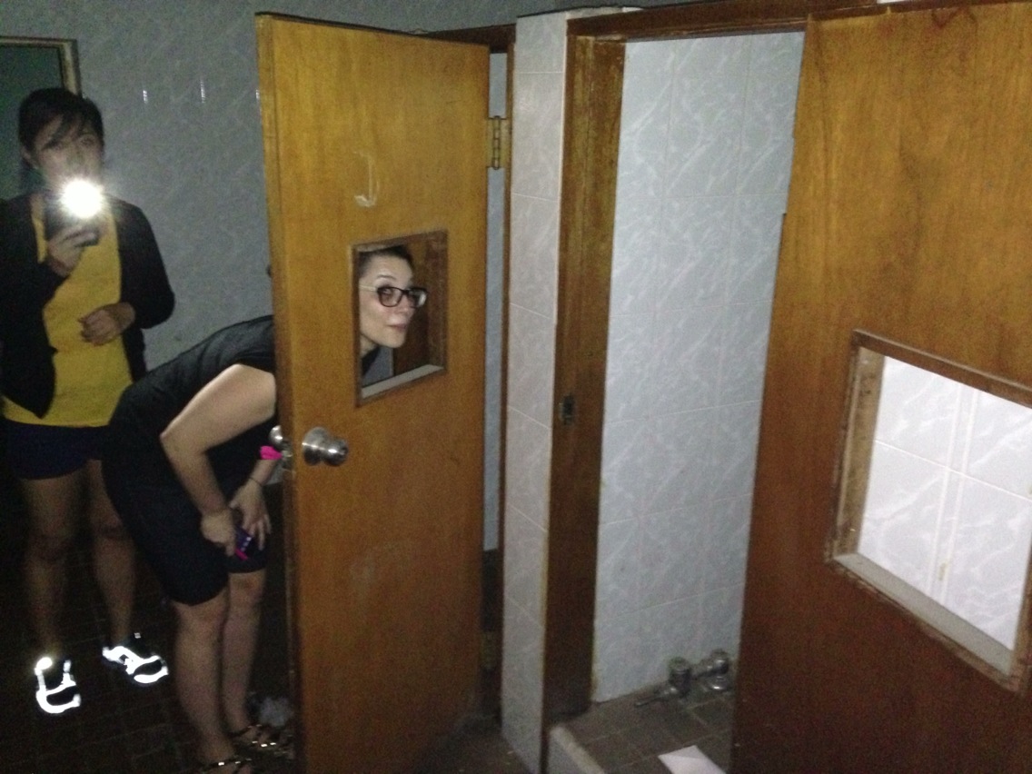 Two fails behind us, we went back to old faithful Mr. Wobbly Ladder. Josh went first to forge a path for his ladies. After getting caught in the seat belt fastening, making lots of strange man-grunts and moans, he had successfully moved the tetanus filled desks, chairs and cabinets that were barricading the door shut. I had a moment of panic while climbing through the window. With my history of falling in Korea, I saw my life crashing down 30 feet below me. But alas, I set a new record and successfully made it through, only to have a chair fall in front of the door forcing me to flex my muscles and move it myself in order to get into the asylum halls.