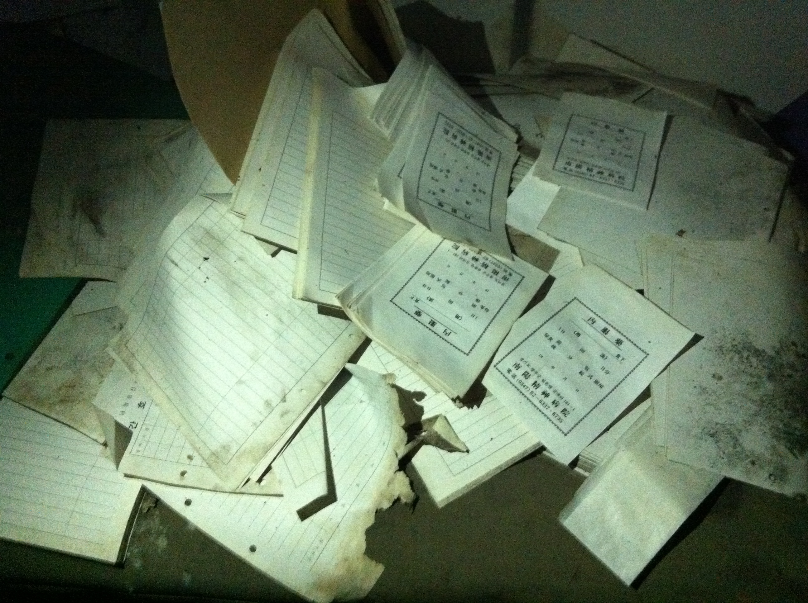 AND WE WERE IN!!!! Once inside, saying it was creepy is an understatement. The halls were so swampy and wet and reeked of the stench of mold, cigarette and hospital having a baby together. The Dr’s office was cluttered with piles of old patient records, overturned cabinets and jackets on the floor, and the bathrooms still had towels and buckets and blankets scattered everywhere. We even found a letter on the floor of one of the bathroom stalls, though it looked freshly written, so was probably placed by one of the other 1,000 sneaky daredevils.