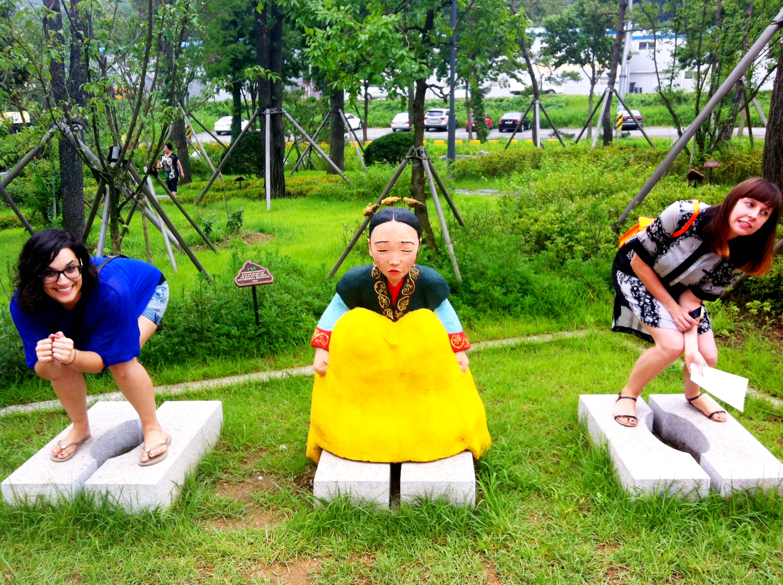 In all seriousness though, I guess we really can thank Suwon and Mr. Toilet for the cleanliness of the public restrooms in Korea. I was telling Jin this morning about our gallivanting at the Toilet museum, and she told me that prior to the 2002 World Cup in Korea, the public restroom situation was actually really disgusting. In order to make the facilities more appealing to the foreign community visiting Korea, the Toilet Association of Suwon stepped in to tidy things up. Since then, the “toilet culture” of Korea has been held to very high standards.