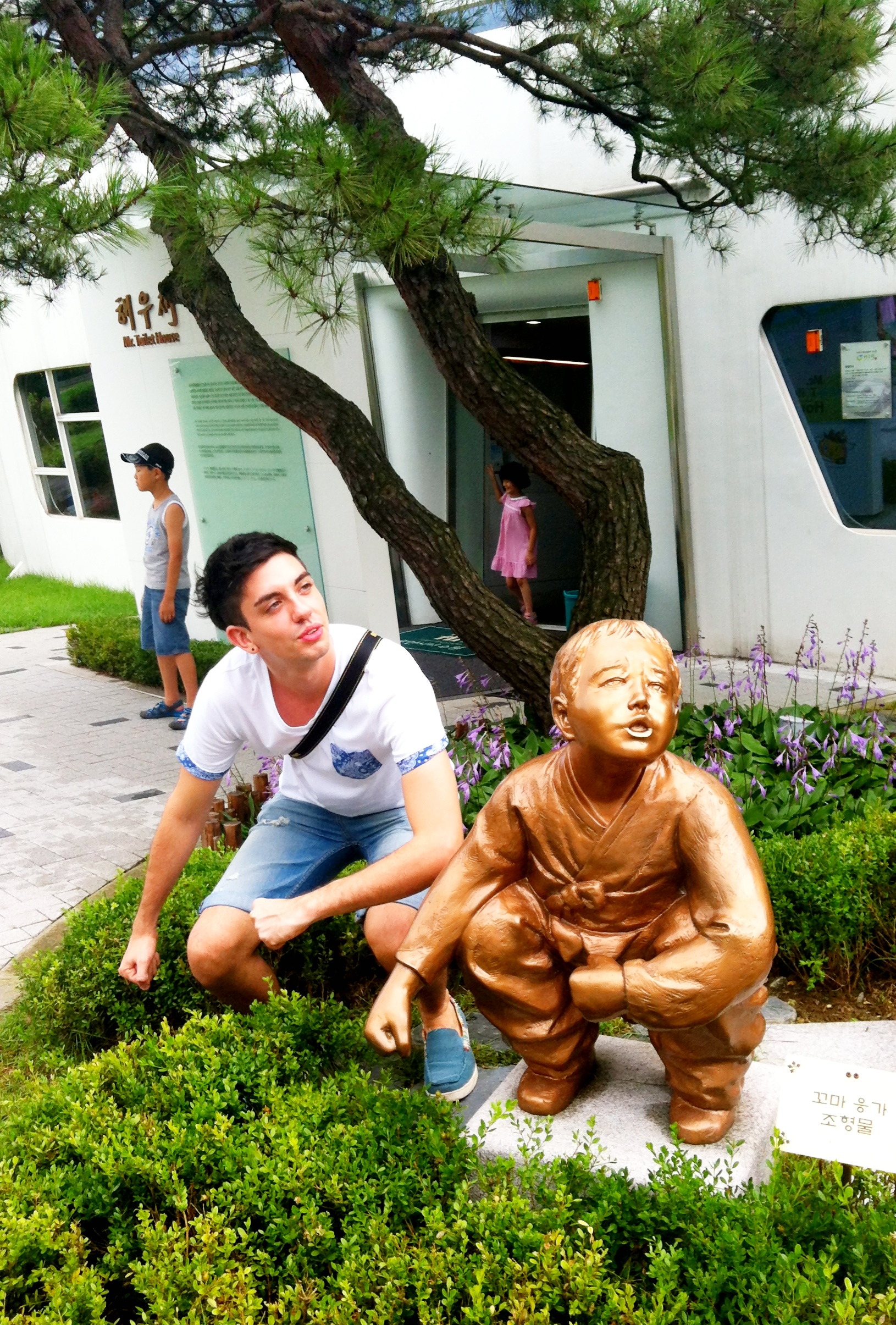 Well, unbeknownst to me, the shitty (“city” said with a Korean accent) of Suwon is where the great Toilet Culture Movement started, and since it’s inception in the late 1990s by Mr. Sim Jae-duck (respectfully nicknamed Mr. Toilet), it has really swept the nation and beyond in an effort to improve the “toilet culture” for all mankind. His dedication to the cause birthed the Mr. Toilet House Museum, and I of course had to make a trip down there. So me, Andria and the beautiful Steven made an excursion down south to get educated in the culture of excrement.