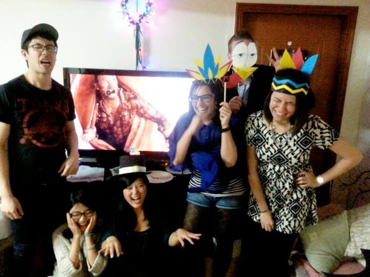 Fattening up was then followed by a few rigorous rounds of Apples to Apples (thanks Andria), Pilgrims and Indians arts & crafts hour with supplies hijacked from school, and a screening of the 2013 film most deserving of a Razzie Award, Sharknado.