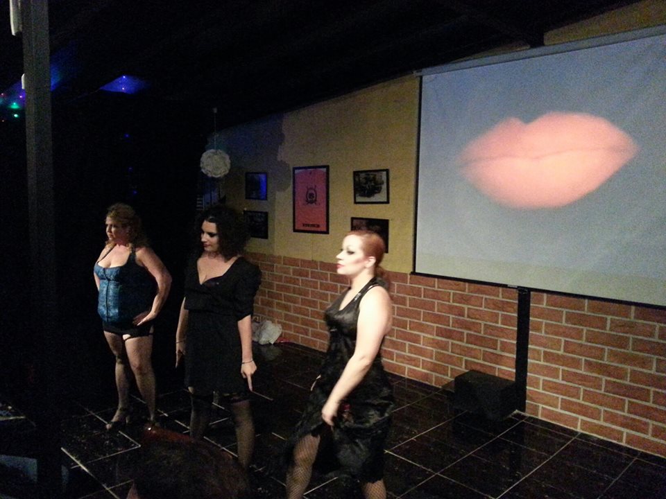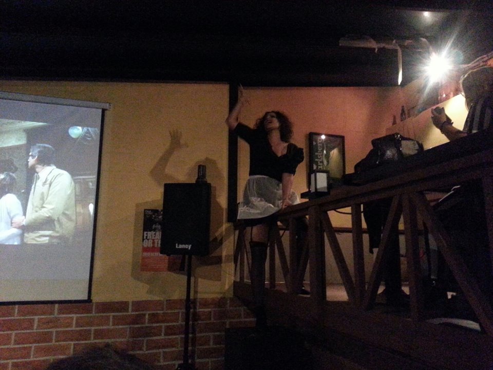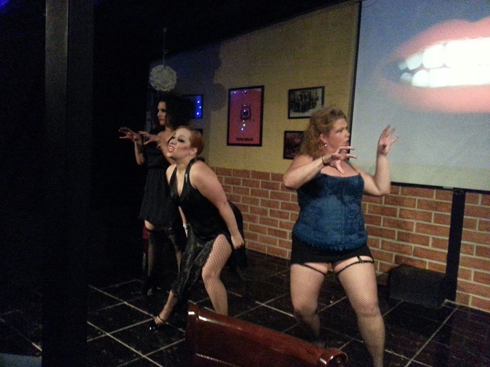 The evening wouldn’t be complete without a family photo in front of a screenshot from said Razzie-deserver, of a man chainsawing himself out of the belly of the beast.