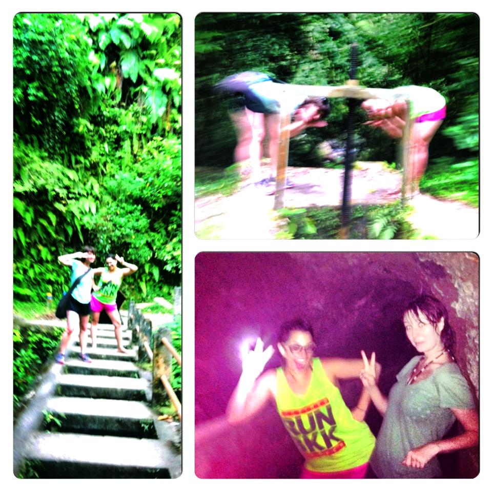 When we got to the first small waterfall, we acquired our guide, Ali, who was a tiny little Indonesian man with horrendous body odor and a smile filled with brown teeth for days. He didn’t understand a lick of English, except for how to ask for money, but held our bags under his raging smelly arm pits as we less-than-gracefully forded many a river, guided us through a bat-filled water tunnel, and took this fabulous collage of “blurrages”.