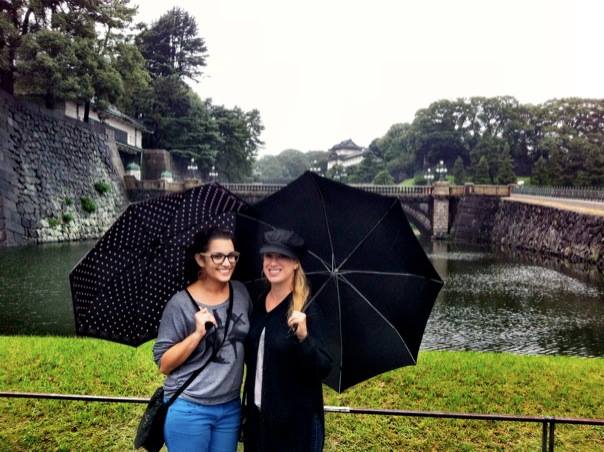 We didn’t really jump over or swim through any moats, but we didn’t get to tour the gardens surrounding the Imperial Palace where Japan’s Imperial family currently lives, as it was closed the day we went. We did however get this documentation of us in front of the moat in the rain. The palace is also behind us in the distance.