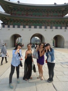 Our absolute most favorite day of her trip was our “Day of Culture.”  That day we went shopping in Insadong where we got down to tradition and cried of laughter as we posed in Hanbok. We went to Gyeongbokgung Palace and got a taste of celebrity when some middle schoolers asked to have their picture taken with us, saw the King Sajong statue, ate some bomb tofu and pajeon (Korean seafood “pizza”), drank tea at a lovely little tea house, and went shopping for a fish and live octopus to eat at the Noryangjin fish market. I ate live octopus for my 2nd time. Jesus.