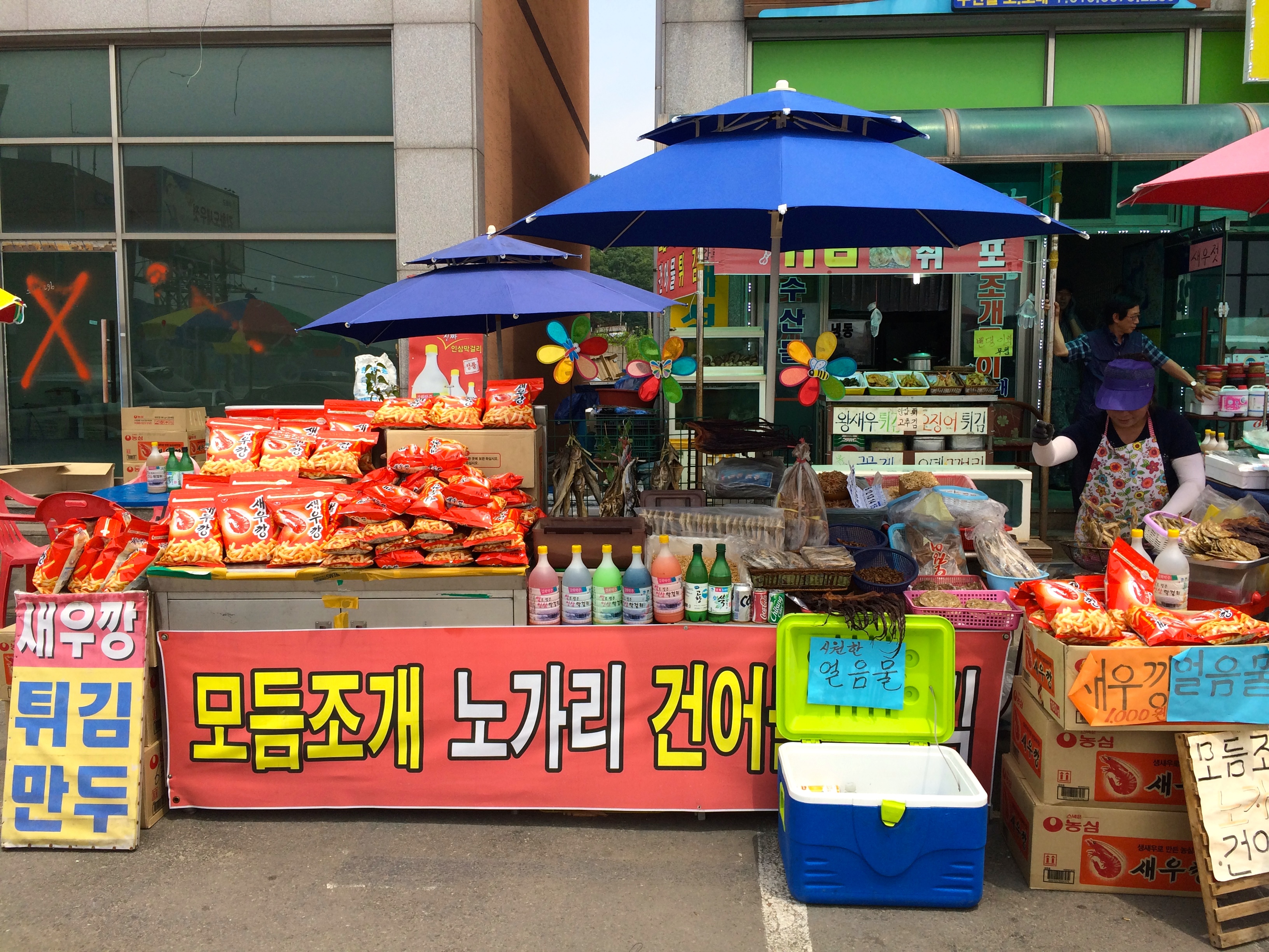 I grabbed some free fried vegetables for the road, a bottle of ginseng makkoli for later, and admired the delicious kimchi being made. Gotta get me a baby kimchi pot before I leave.